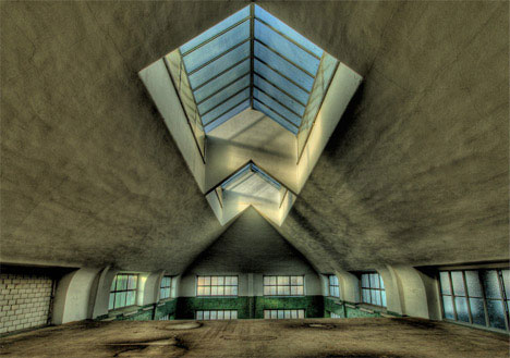 An absolutely beautiful image that borders on surreal depicting an abandoned brewery space in switzerland. Perspective and HDR make this seem more of a rendering than the real photo it is. (Source)