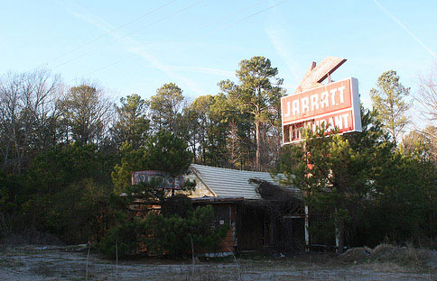The roadside diner was once a staple in a society driven to drive everywhere but has since become something of a relic of the past. This one has clearly been left to seed for quite some time and is slowly but surely being surrounded by the trees around it. (Source)