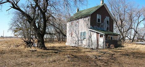 Sometimes it is difficult to tell just how long ago a building was deserted. This house was abandoned as recently as 1999 according to papers found within it. This shot of the house itself was pieced together from six different images and can be seen at a larger scale at the (Source)