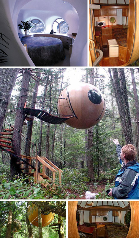 What makes art or design both amazing and green? Sustainability is a factor, but so is style – and the degree to which something is integrated with its environment. From transforming green boxes to rotating dome homes, creative eco-art to exotic eco-landscapes and dizzying tree houses to dazzling tree sculptures, here are twenty of the greatest (and strangest) works of contemporary green art, architecture and design. Click the thumbnails below for more images and information: