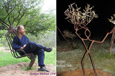 Bending building materials to a designer’s whim is one thing, bending trees to fit a certain intention is quite another. In the latter case sensitivity to time and growth are necessary and the result is a combination of artificial vision and organic evolution. (Source)