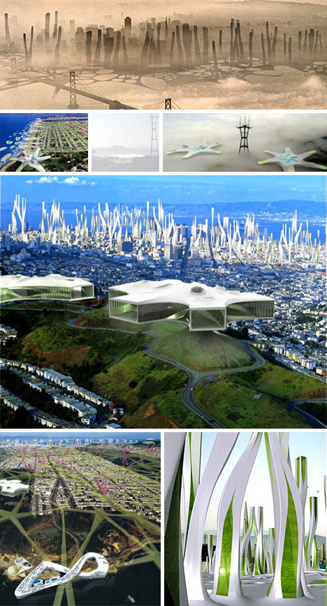 What might the world’s major cities look like in 10, 20 or even 50 years? This strangely ingenious and forward-thinking design “uses Geothermal Mushroom structures to extract heat and water from deep in the earth, and whimsical Fog Flowers to render moisture from the air and grow algae, which would then be turned into hydrogen for fuel.” While many (or most or all) of its particulars might never be realized it is truly an exercise in thinking freely about the potentials and problems of a future in which re-urbanization seems all but inevitable. (Source)