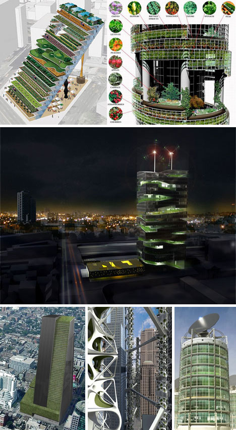 Though only one of these is in the planning (in Las Vegas of all places) the idea of a skyscraper farm is being increasingly considered by prominent architects, builders and developers around the world. The advantages are numerous. A skyscraper farm brings food to the heart of the city – a sustainable solution to transportation costs and energy expenditures. Building vertically minimizes the footprint of buildings and maximizes internal production areas as well as creating the possibility for multistory spaces as needed for different growing conditions. For now, many consider such projects cost-prohibitive but as building and growing technologies evolve you may find a skyscraper farm on your own city skyline soon enough. (Source)