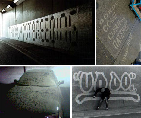 Of course one doesn’t have to be famous or even exceedingly talented to experiment with reverse graffiti. Anyone who has ever run their finger experimentally over a dirty car windshield or traced something in a shop window could potentially consider themselves a reverse graffiti artist. Here are some more examples of creative reverse graffiti and other legal street art.