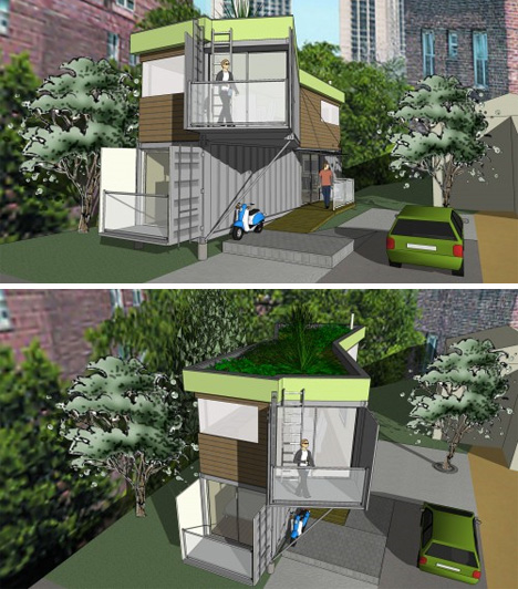 The Eco-Cargo design from Keith Dewey is based on three primary themes: Healthy, Simple, Efficient. Dewey wants the design to inspire residents to live without toxic materials, consume less overall, and use resources wisely. This compact urban home design would allow the home to be inserted into small, otherwise-wasted lots while still providing a decent amount of living space for residents. The staggered design of the two containers allows for increased upper-floor area as well as an interesting visual effect. The Eco-Cargo would do equally well on its own or in a larger community full of similar units.