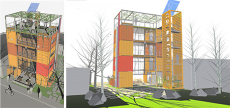 Seattle architectural firm HyBrid Architecture developed this plan for a client who owned a small, underutilized piece of urban property. Their design includes a double-height ground floor to be used for commercial space, two studio apartments, and a shared rooftop garden that collects rainwater for reuse in the building.