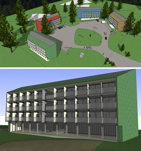 Container architecture mastermind Keith Dewey of Zigloo tried his hand at a large-scale housing project with ModuLUTE (Modular Living Units To Enjoy) and came up with a winning design. Each 8X20 ft shipping container can be “plugged in” to the infrastructure, making it simple to change out units when needed. The entire community would make use of environmentally-friendly building materials and green energy. Dewey and company are looking for an opportunity to put this fantastic idea into practice.