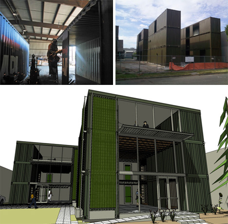 Shipping containers are great for living in, but how about working in one? Given the enormous success of low-cost, environmentally-friendly recycled shipping container homes, some architects and designers are extending their scope to include commercial buildings also. Many of these buildings are brand new or even still in the planning stages, but some have existed for many years because they were the cheapest, most readily available option. These buildings prove that necessity truly is the mother of invention.  Click the thumbnails below for more images of and information on these amazing designs: