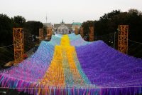 In Berlin, spanning the 450-foot length of the Brandenburg Gate where the former Wall divided the city, a kinetic installation ripples in the wind, bearing hand-written messages from city residents. Created by artist Patrick Shearn, “Visions in Motion” recognized the 30-year anniversary of the fall of the Berlin Wall on November 9, 1989. View this … Continue reading 120,000 Fabric Streamers Flutter Above the Former Berlin Wall in Germany